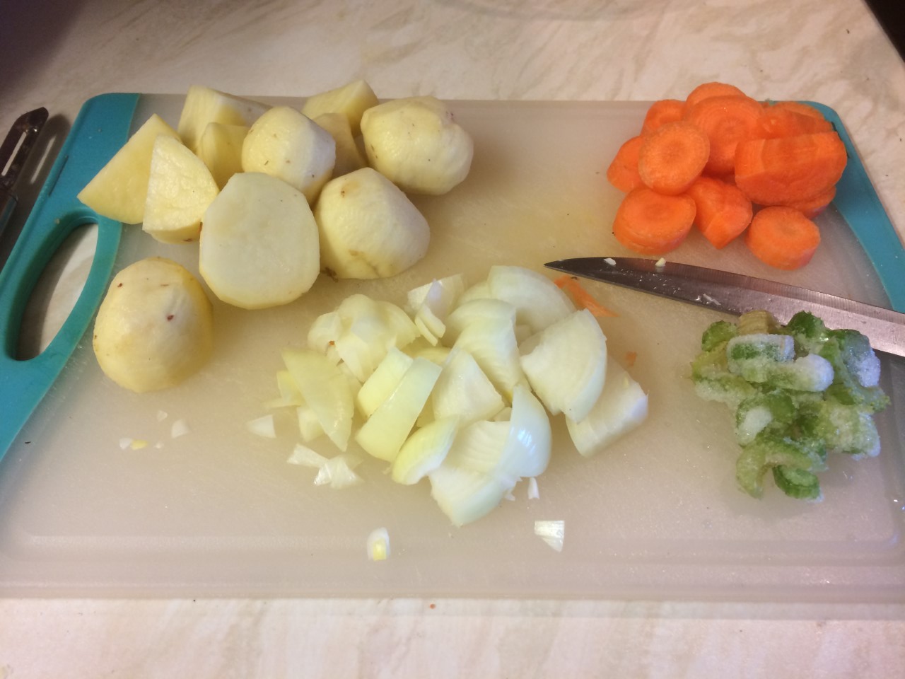- 600g of white potatoes peeled and chopped into roast potato sized pieces