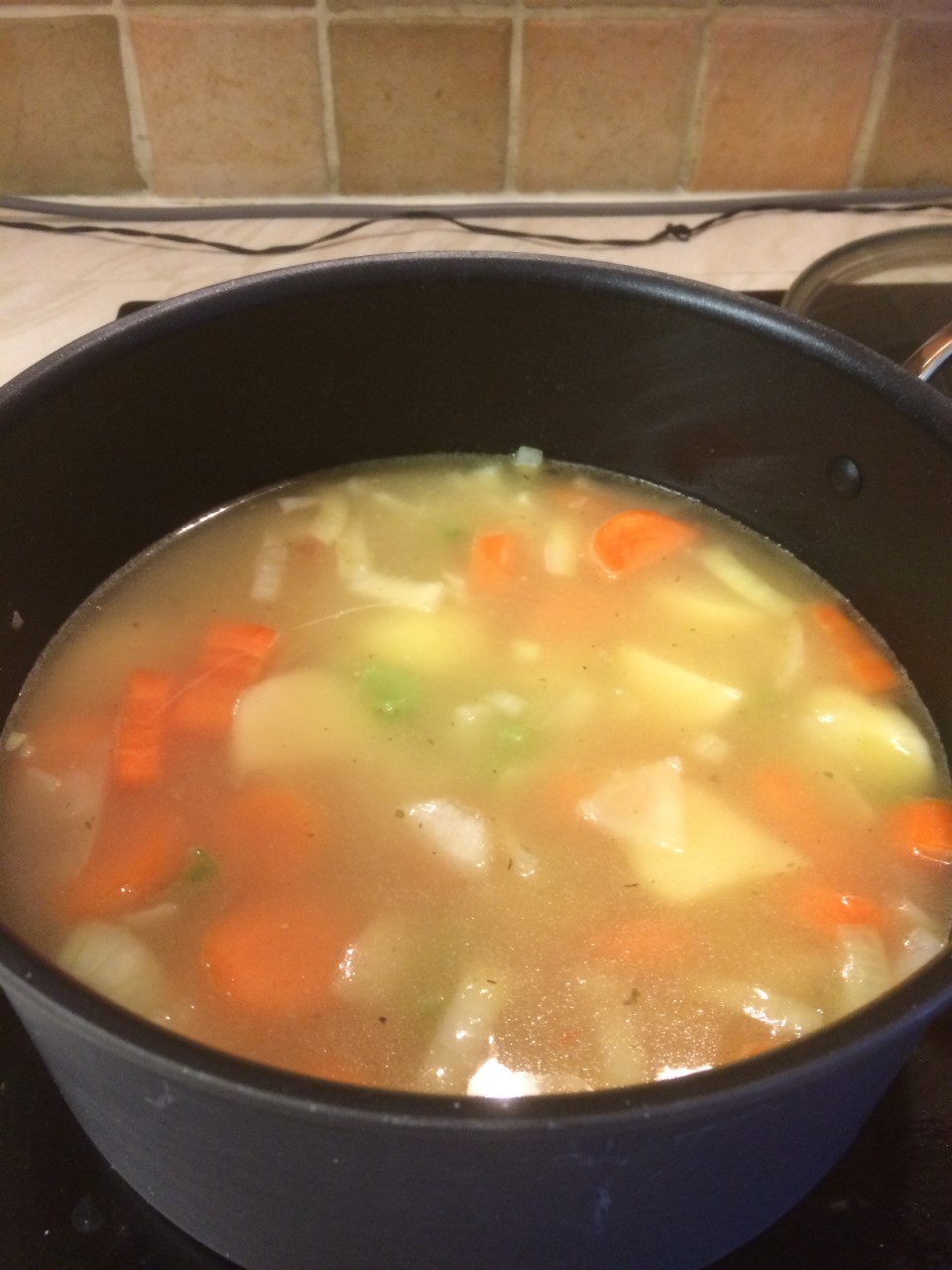 - Add your water and crumble in the stock cube. There should be enough water to just cover the veg.