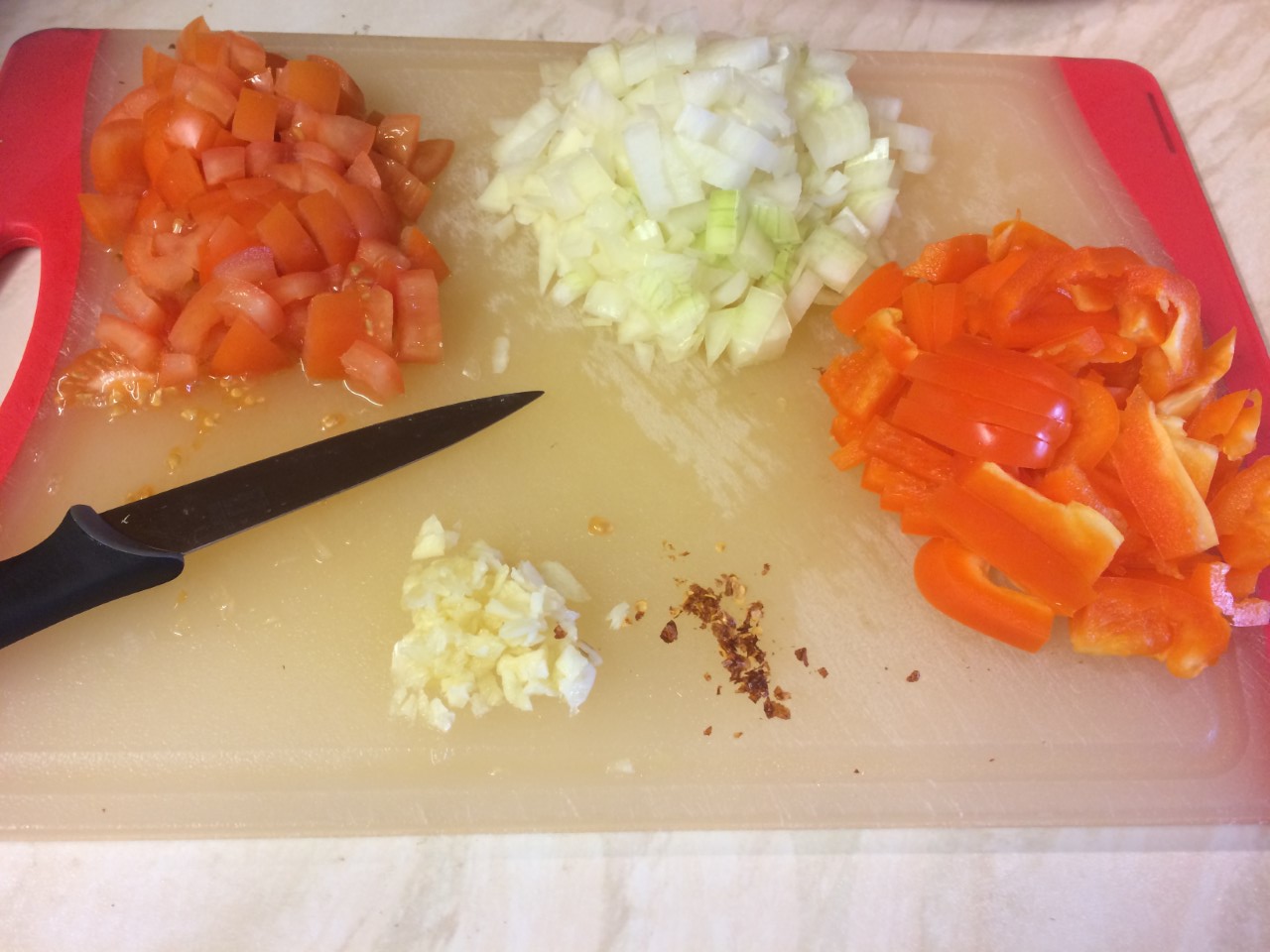 - 1 red or orange pepper, sliced then chopped