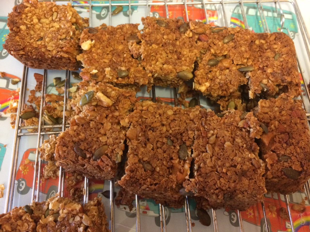 The lack of syrup means they will have a crumblier texture than you might be used to, but they’re still super sweet thanks to the honey and the nuts and seeds create a lovely crunch. They also smell divine when cooking in the oven. Good luck waiting until they’ve cooled down before trying a piece! Just don’t burn you tongue.