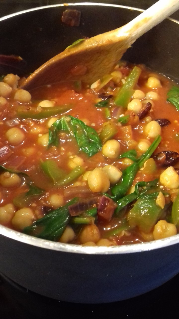 - Turn the heat down to medium and add the lemon juice, tomatoes, puree, chickpeas and couscous. – Pic 2