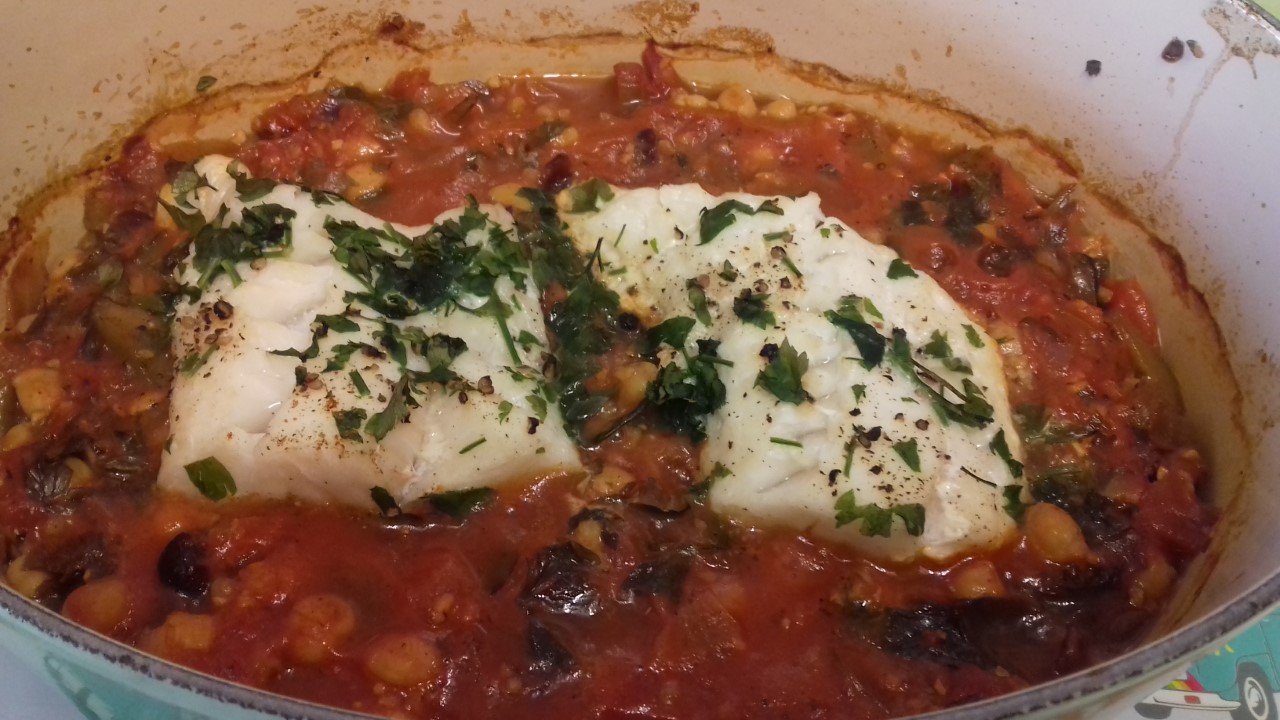 We don’t eat a lot of cod at home, in fact, unless it’s covered in batter and fried, I don’t even think to buy it. However, my local supermarket had some lovely responsibly sourced skinless and boneless cod fillets on offer last time I was in there so I picked some up on a whim and spent the entire drive home trying to figure out what I could do with them. My friend and I were swapping recipes a few weeks ago and I remembered her saying she makes a ratatouille, places fish on top, mozzarella on top of the fish and bakes it in the oven. I think it’s a lovely idea and would definitely work with cod, but I fancied something a bit more aromatic, with a bit of spice. I suddenly remembered the Moroccan seasoning I had in the back of the cupboard at home and the dried cranberries left over from Christmas and came up with this Moroccan inspired dish.