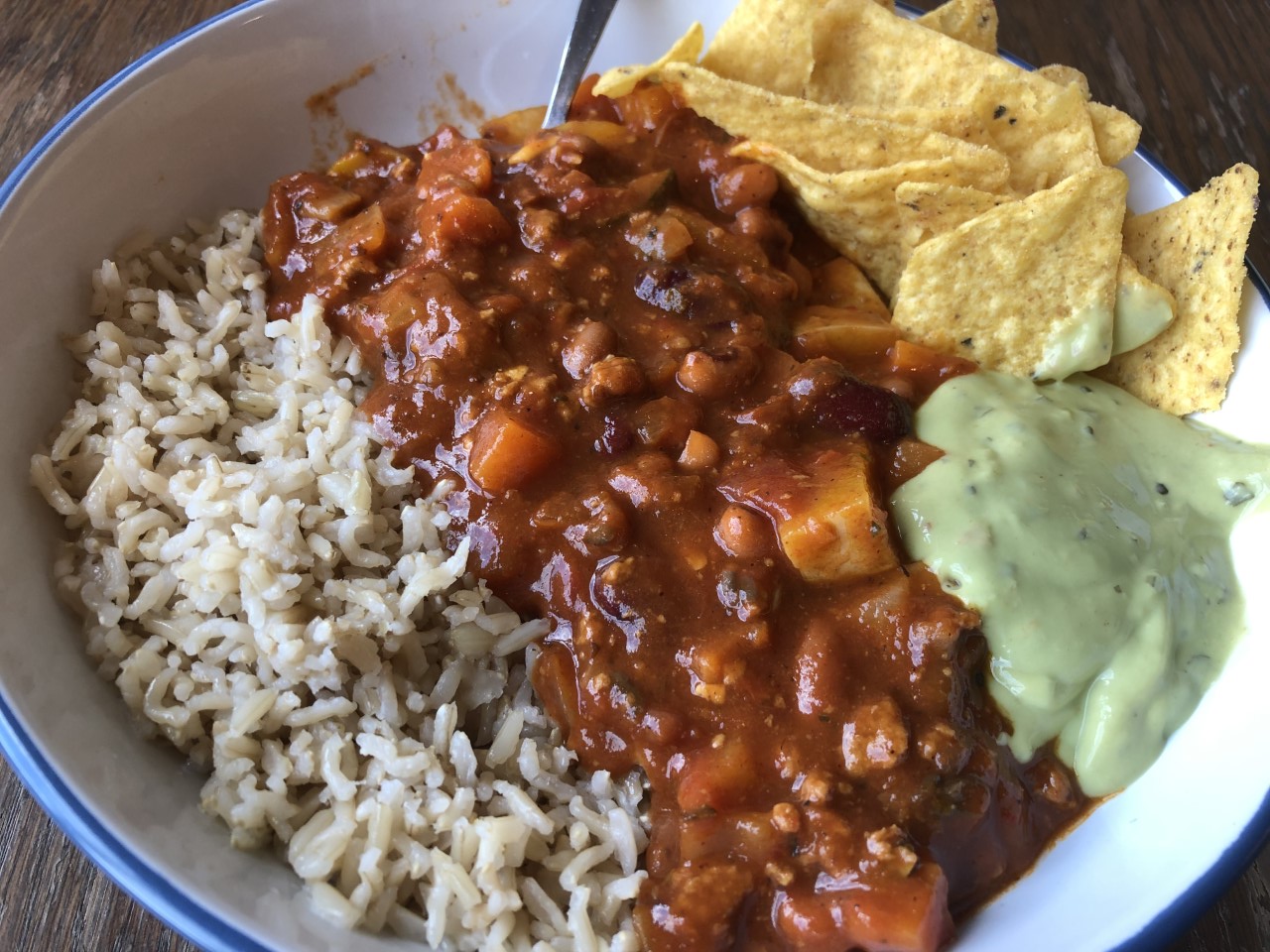 So I’ve taken inspiration from one of these packet mixes and pushed it to the next level. This recipe is packed with loads of gorgeous fresh veg, pulses and quorn mince. It’s easy, healthy and super tasty. I often serve this when meat-eating friends come round for dinner as it’s so packed full of flavours, they really don’t miss the meat. I usually make up a big pan and plonk it in the middle of the table with guacamole, sour cream, Tortilla Dippers, cheese and baked potatoes or rice and let everyone help themselves. Even my veg-dodging husband loves my Chilli Con Carne, and regularly requests I make a batch.