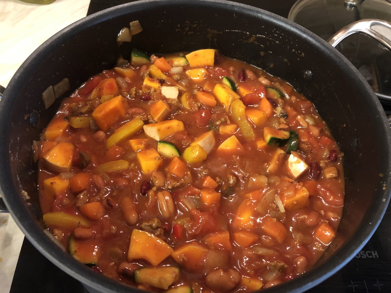 - Taste and add seasoning or extra chilli if you feel it needs it. Turn the heat down so it’s just bubbling and leave the lid off. This will reduce the mixture a bit and intensify the flavours. Stir every so often and leave for at least another 10 mins. – Pic 5 and 6