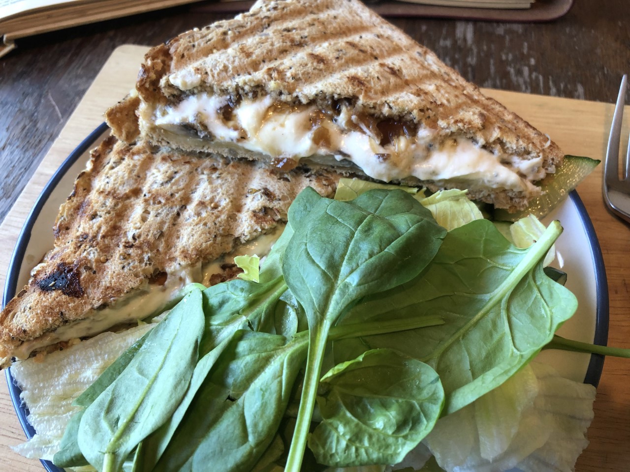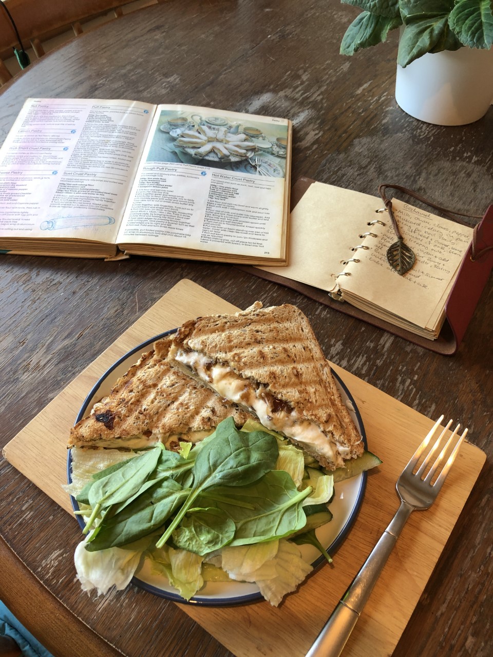 Make it the night before to save precious time in the mornings, but don’t toast it. Wrap it up, then take it to work with a small leaf salad and toast it on a toasty machine or an old George Foreman like I have for a really satisfying, filling, easy lunch.