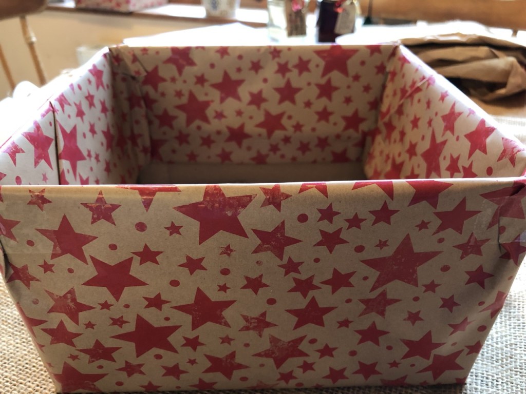 - The box – all the boxes I use are unwanted packaging from supermarkets, shops and parcels I have received through the post. Shops are usually happy to give you their unwanted boxes as it’s then less for them to recycle. Using cardboard boxes also means that after the person you are giving the hamper to is done with it, they can put it in their recycling.