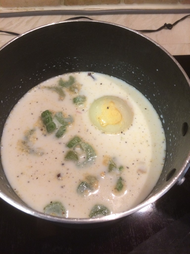 - Put the milk, onion, celery, mustard powder, black pepper and cloves into a pan and bring to the boil slowly, stirring every so often. – Pic 1