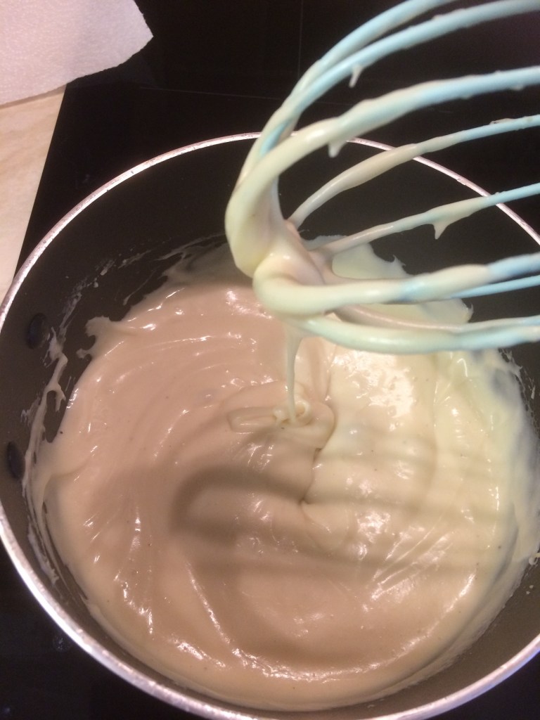 2, Add the milk slowly. A bit at a time and make sure it’s fully dissolved before adding another drop. If you add too much at once it’ll go lumpy.