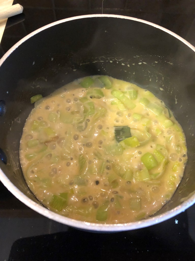 - Once the butter has melted, add the leeks and cook until soft. – Pic 1
