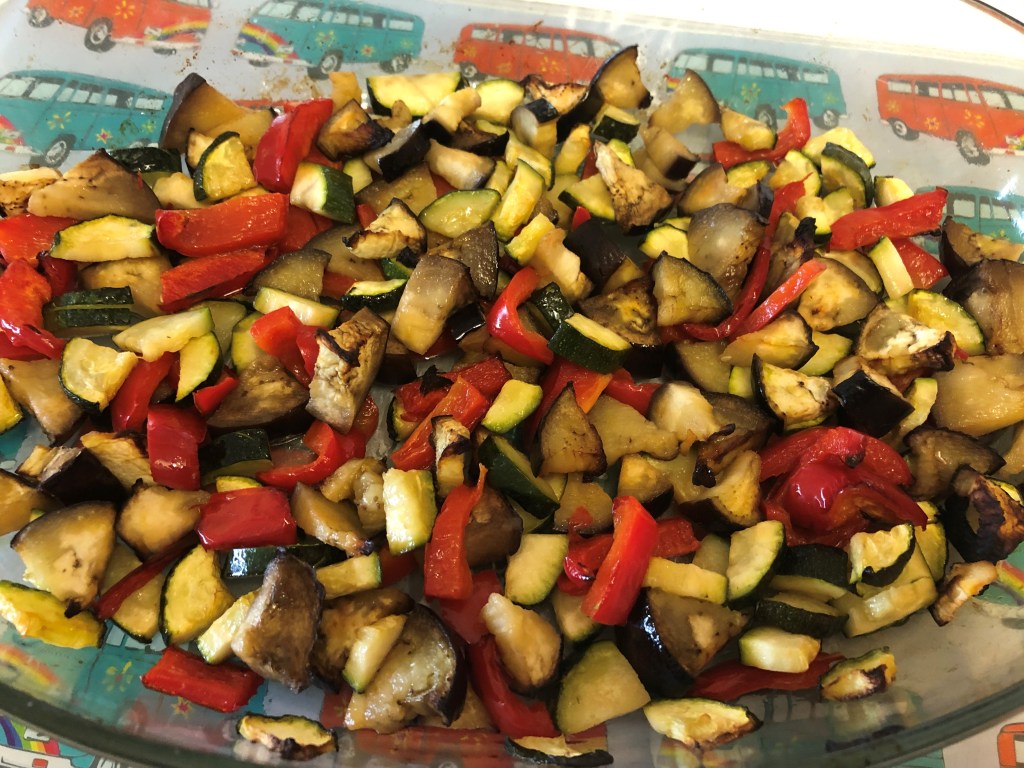 - Add the roasted veg.