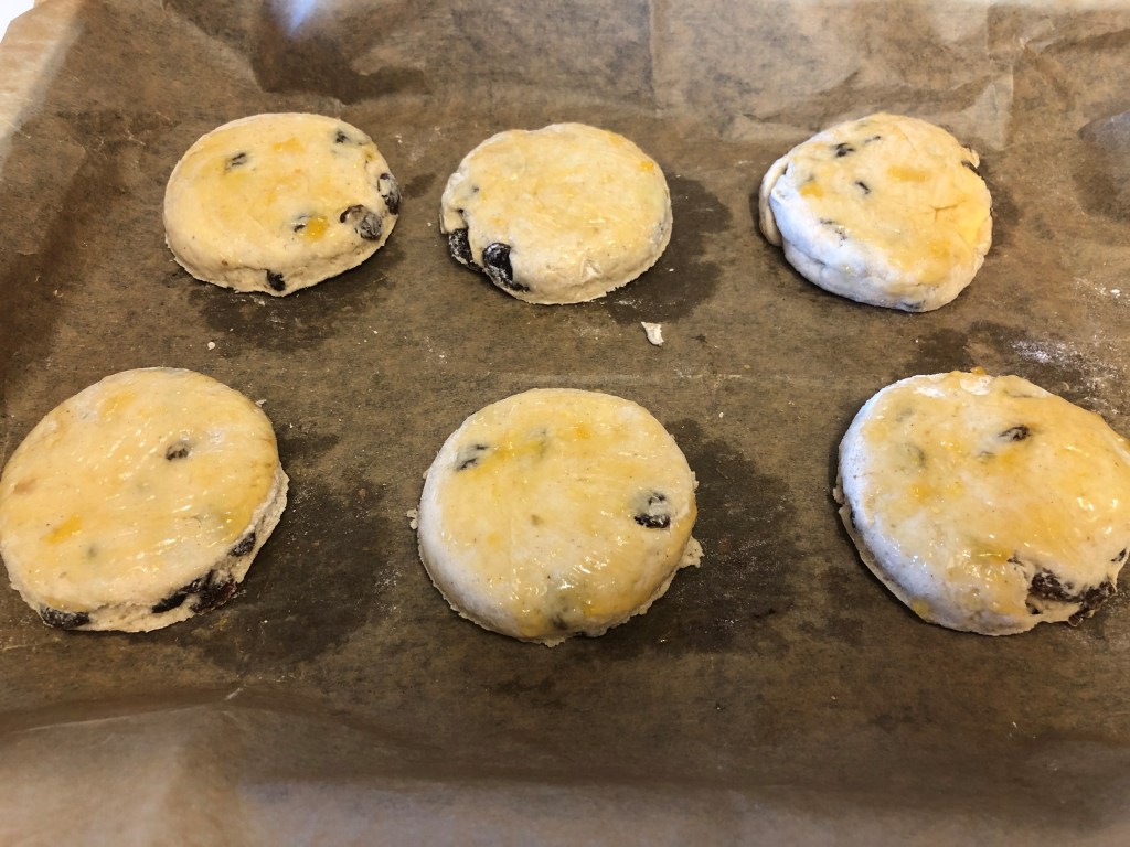 - Using a round or fluted cutter, cut 6 – 8 scones out of the mixture and place on baking parchment on a baking tray. – Pic 5
