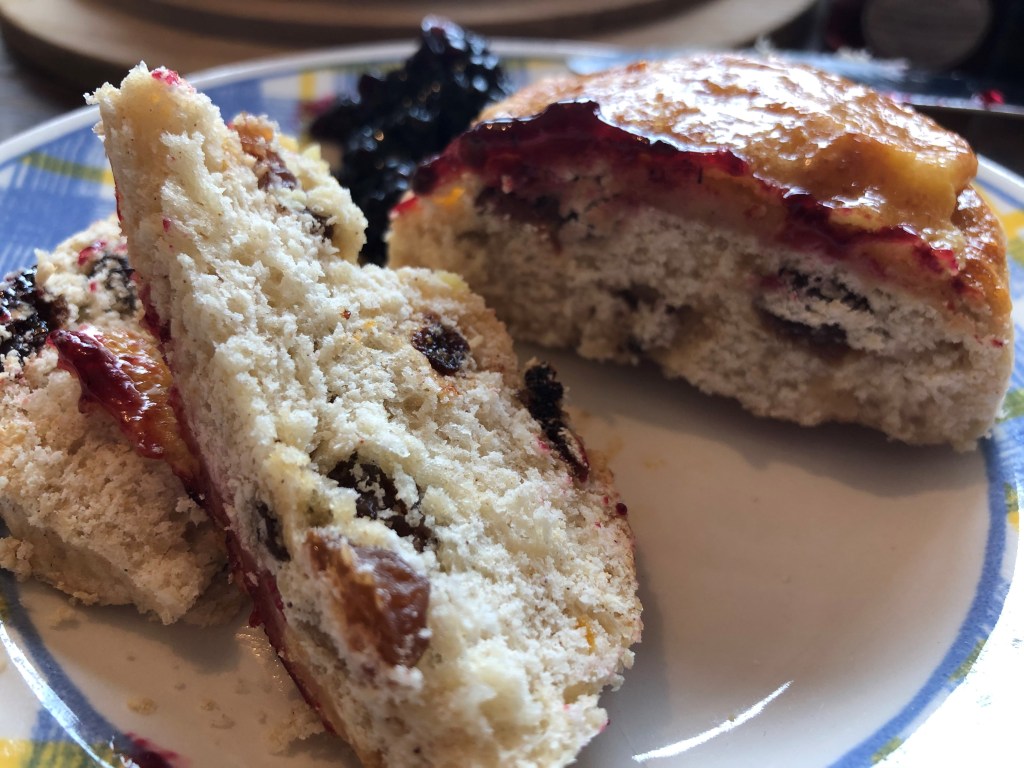 This year however is going to be very different. Thanks to ‘The Virus’ our annual Easter gathering won’t be taking place as we are all still on lock down. I will still be doing a bit of baking though (any excuse). This year I fancied giving a Simnel Cake a go. These traditional Easter cakes are spiced fruitcakes covered in marzipan. They are rich, sweet and delicious. But even if I make a small one, it’ll still be far too much for us to eat on our own, so I decided to experiment and use the yummy Simnel Cake flavours in something much smaller and lighter – scones.