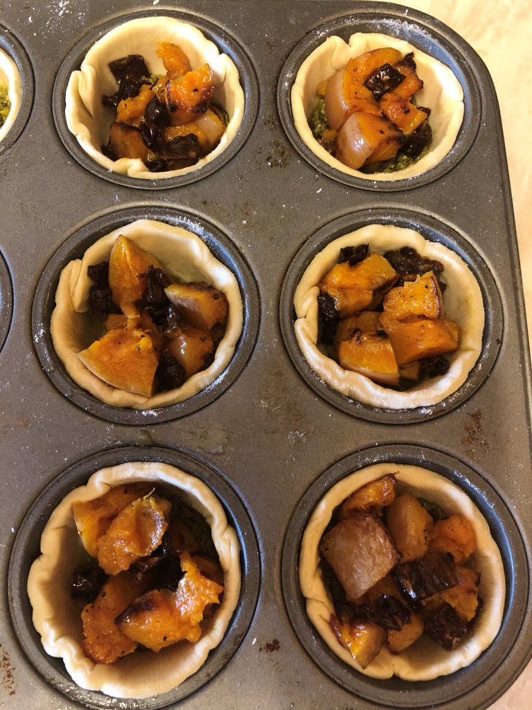 Ready in 1 hour 10 mins (40 mins roast, 10 mins prep, 20 mins bake) – Makes 6 tartlets