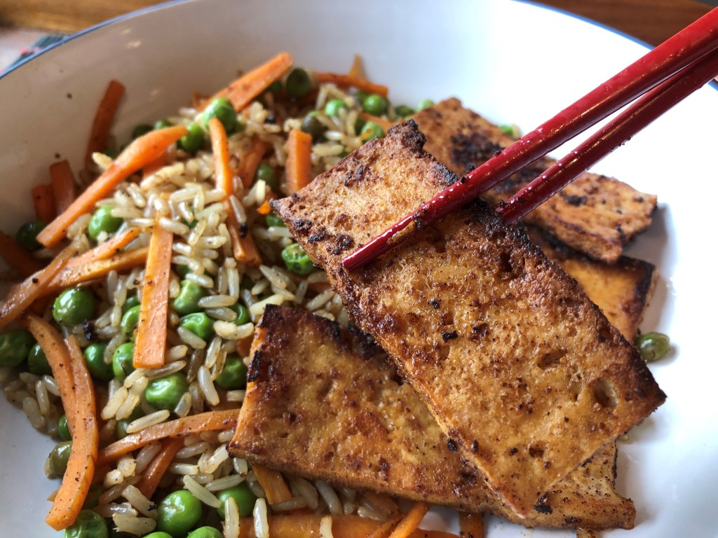 This is a light meal, packed full of flavour, and though it takes a bit of time to prep the tofu, once it’s marinated it’s really quick to cook.