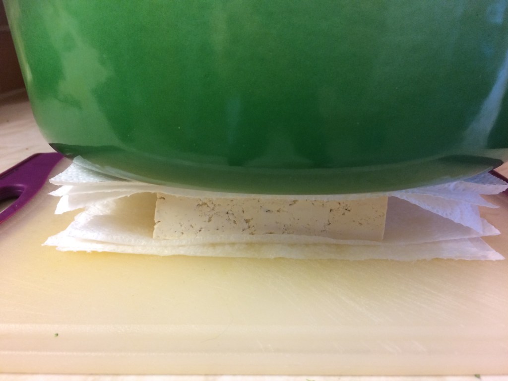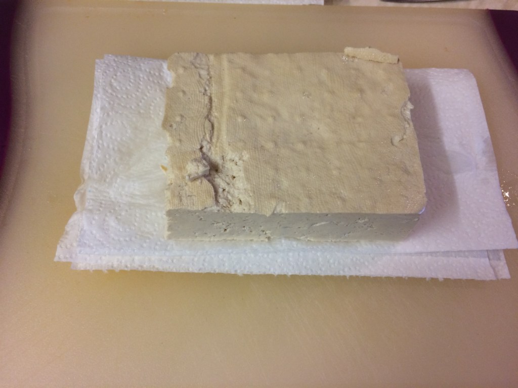 - Open the tofu and drain off the liquid.
