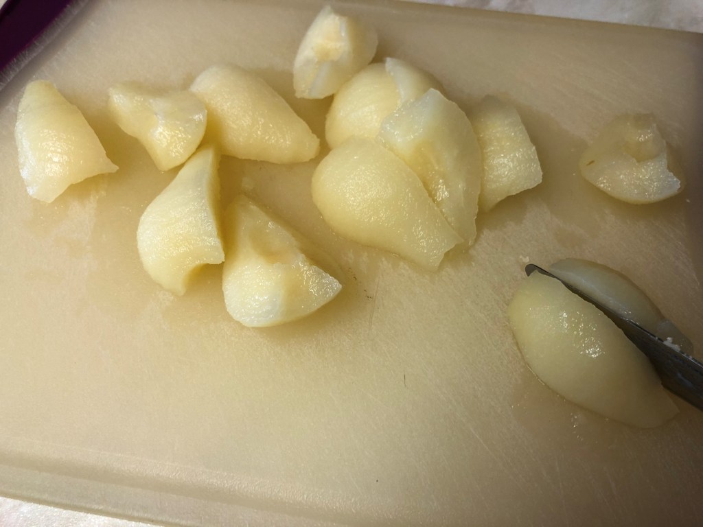 • 1 tin of pear halves in syrup (200g-250g drained weight)