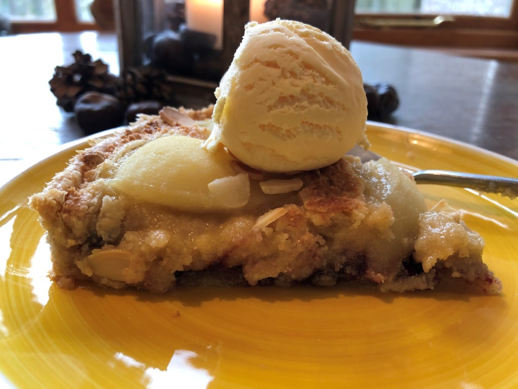 • If you want a stronger pear flavour, brush a small amount of the syrup from the tinned pears on to the hot tart as it comes out of the oven.