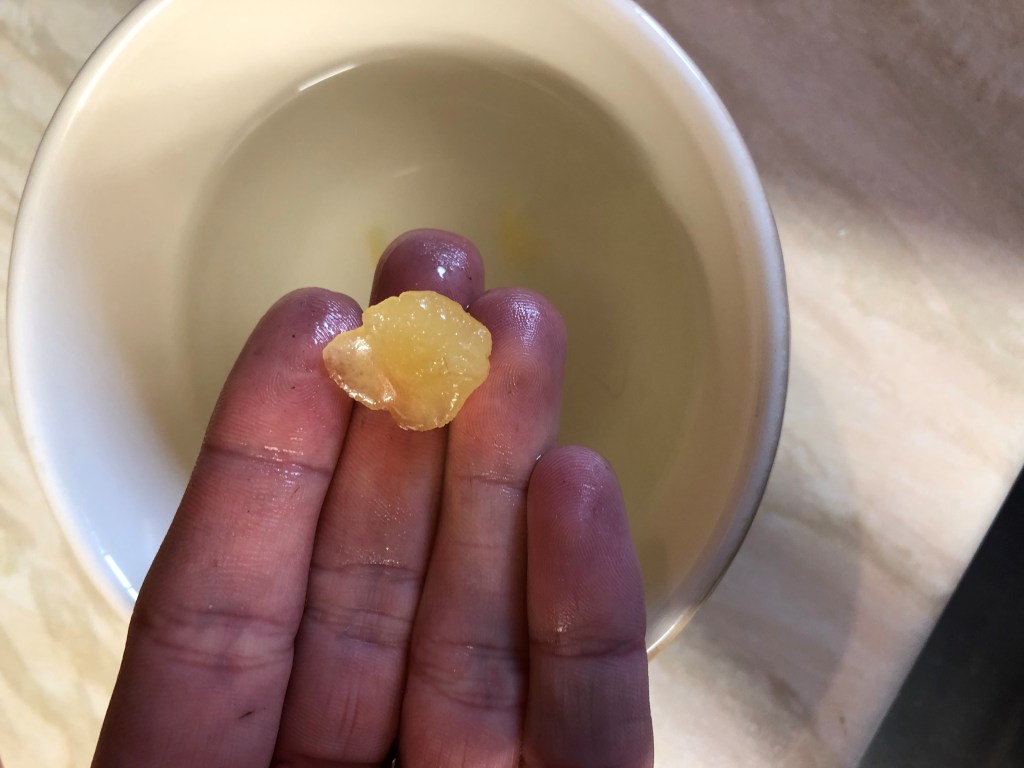 - Once the mixture has turned golden, spoon a couple of drops into a cup of cold water. If you can form a ball with it with your fingers, it’s ready.