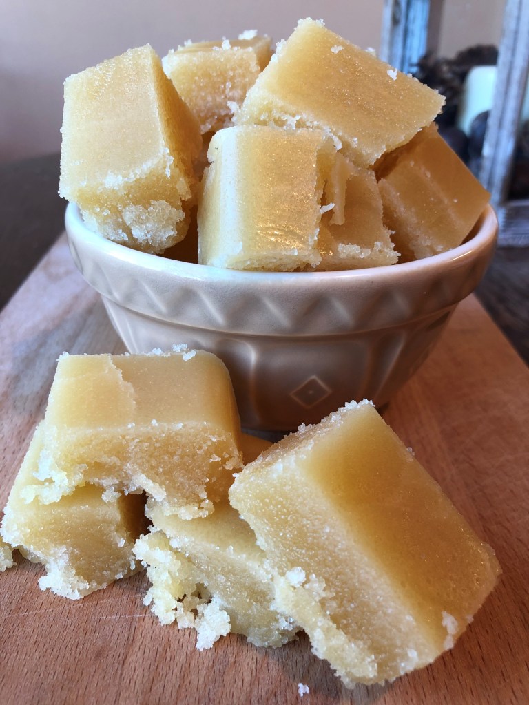 I thought about sharing a recipe for Scottish Tablet, but to be honest, there are so many great recipes out there for tablet, I wouldn’t be sharing anything new. It’s also hard work to make – you have to beat it, hard, for a long time to get the required texture. This treat is much quicker and easier to make and is inspired by the much-loved Scottish sweet, with an added alcoholic kick, just what you need on a cold winters day. My Soft Scotch Sugar Sweets aren’t quite tablet, aren’t quite toffee, and certainly aren’t fudge, they’re somewhere in between. They’re super sweet, soft, crumbly, melt in the mouth and leaves behind a subtle, sweet, whiskey flavour on your tongue. Yum!