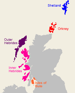1, Scotland sits at the very North of Great Britain and borders England. It’s comprised of a large area of mainland as well as over 900 islands which are split into five groups – the Inner Hebrides, the Outer Hebrides and Bute in the west, Orkney and Shetland in the north.