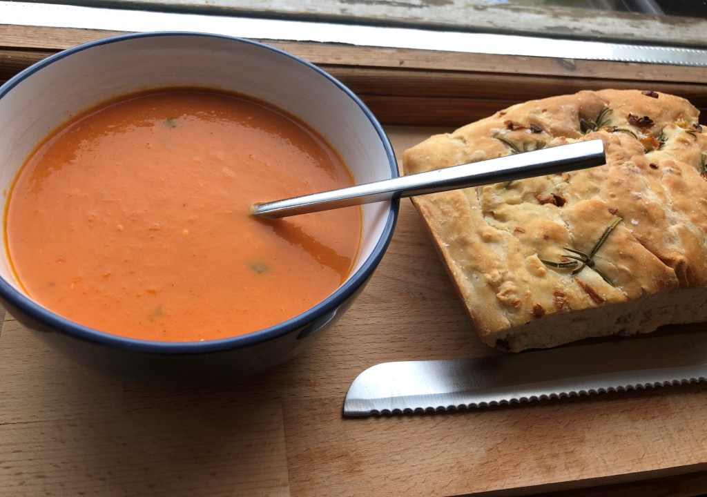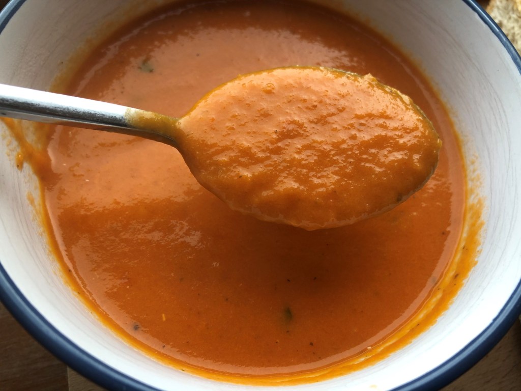 There’s nothing more comforting on a cold, wet, winter’s day than a steaming bowl of hot tomato soup. You can, of course, buy very good tinned soups, but if like me, you get a lot of joy, and take a lot of pride in cooking things from scratch, then you’ll enjoy making your own. And this recipe is really easy and tastes great!