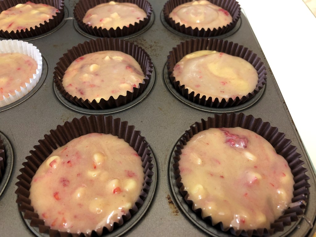 - Lay out 12 large muffin cases in a muffin tray and spoon the mixture evenly into each one. Fill them almost to the top.