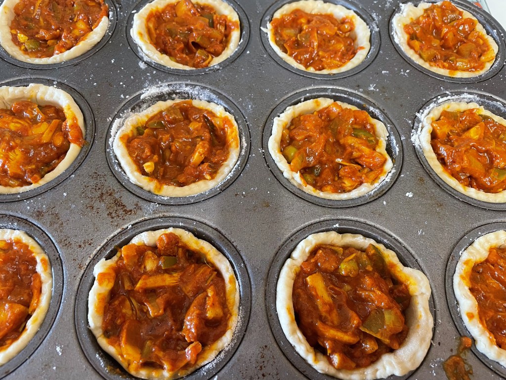 - Fill the pastry cases with the curry (you will have curry left over, don’t over fill them.