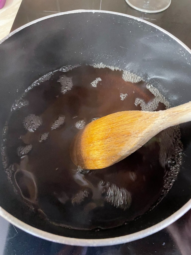- Once all the gelatine and sugar has dissolved, put the heat on, and bring the mixture to the boil.