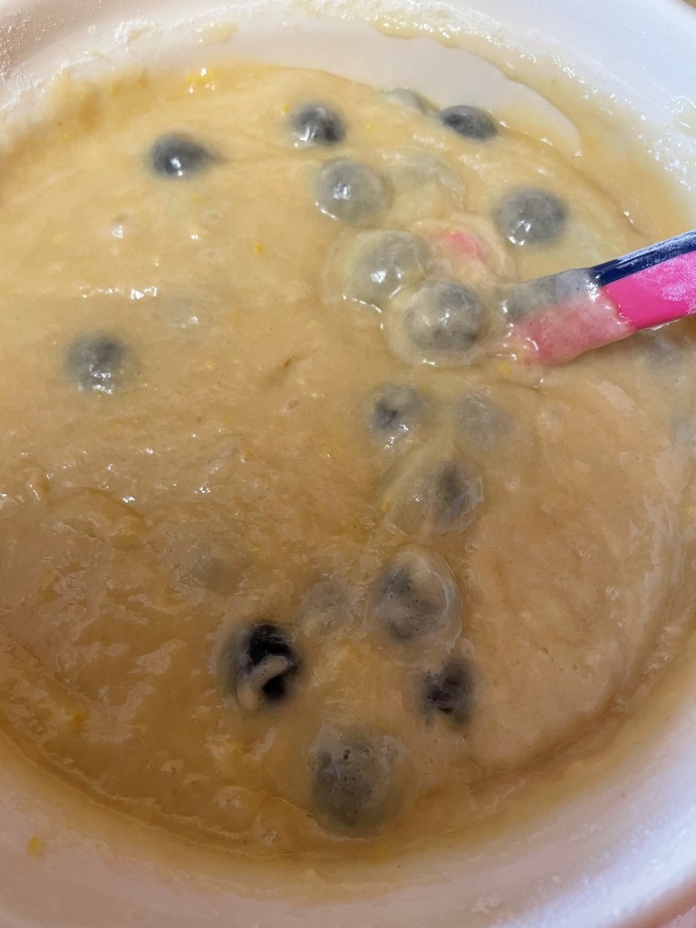 - Stir in the sugar and lemon zest, then add the blueberries and mix.