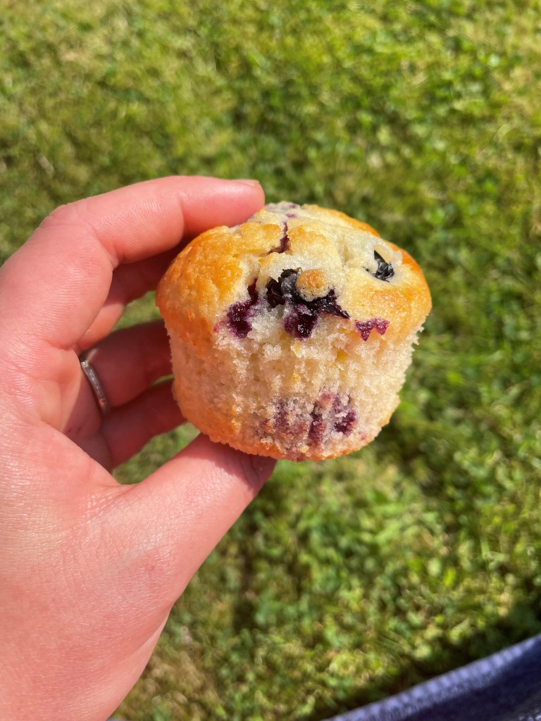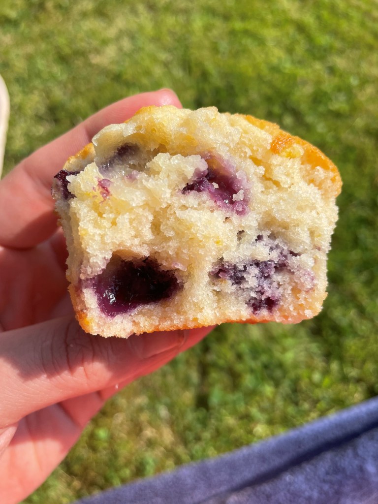 You’d never know these muffins were dairy free. The texture and rise is just like a normal muffin, and they taste delicious – zesty, sweet and full of blueberries.