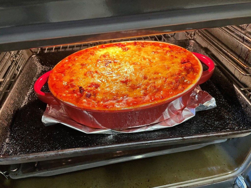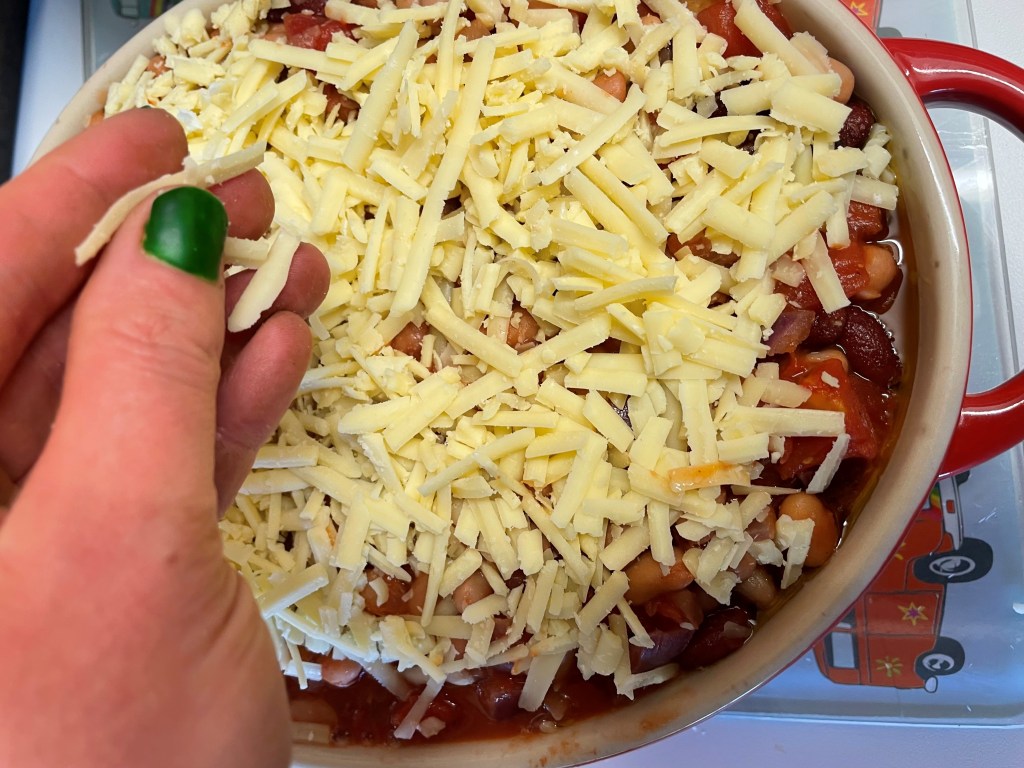 - Sprinkle the grated cheese over the top and bake for 20mins, or until bubbling and piping hot throughout.