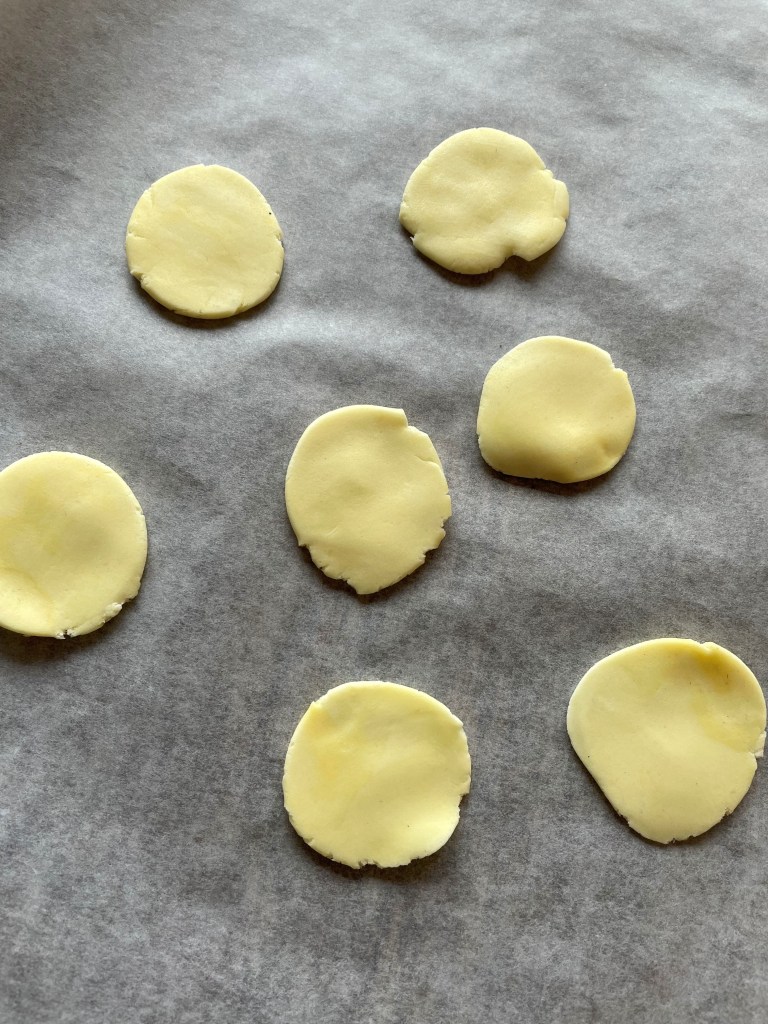 - Flatten each ball either with a rolling pin or the palm of your hand. Make sure they’re flat and even.