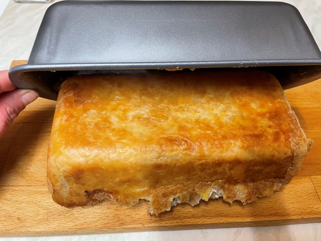- Let it rest for a couple of mins in the tin, then turn it out onto a board, slice and serve.