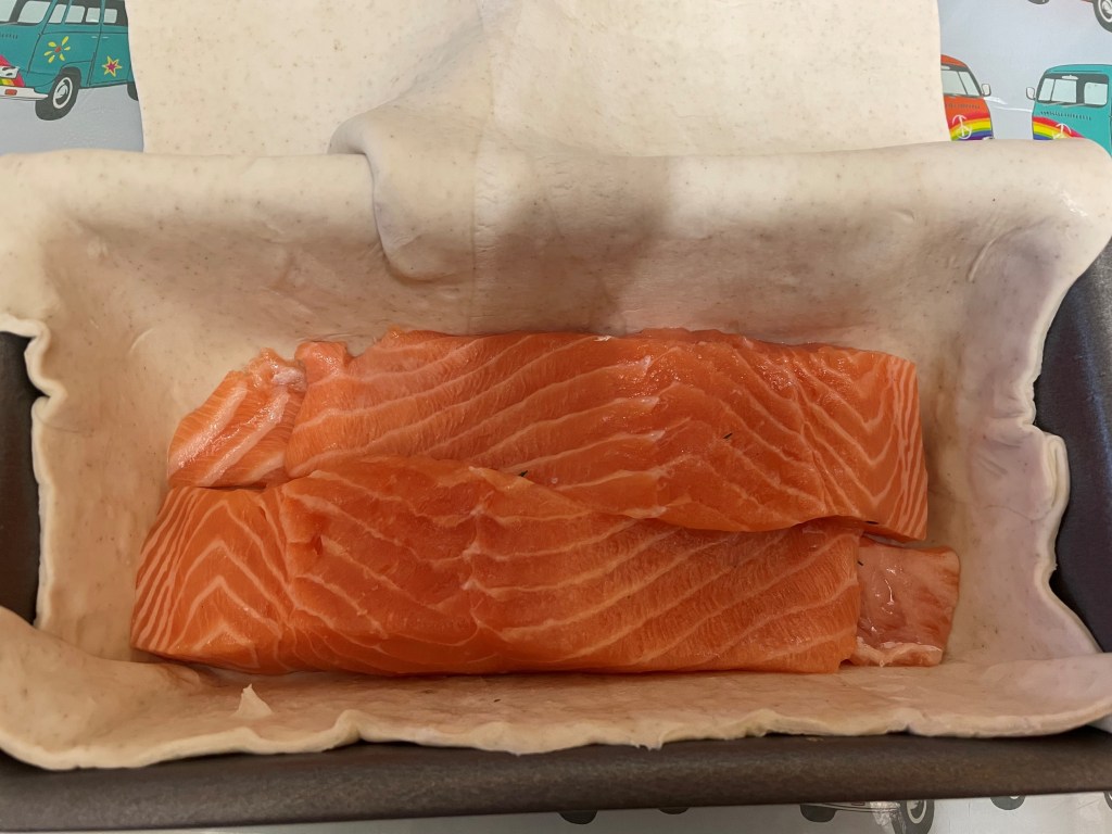 - Close up the pastry over the salmon and cream cheese mix and crimp closed.