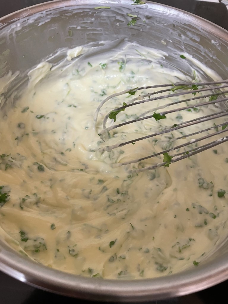 - Once thickened, take the pan off the heat and add the fresh parsley and tarragon.