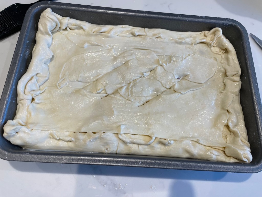 - Place it on top and crimp the edges to seal it to the pastry sides.
