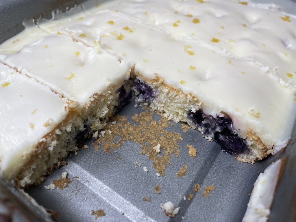 Traybakes are probably the simplest cakes to make as there is no need to line your baking tray (though you should grease it well), you don’t need to slice or fill the cake and it’s easy to cut into portions. Also, everyone loves lemon and blueberry cake, right?