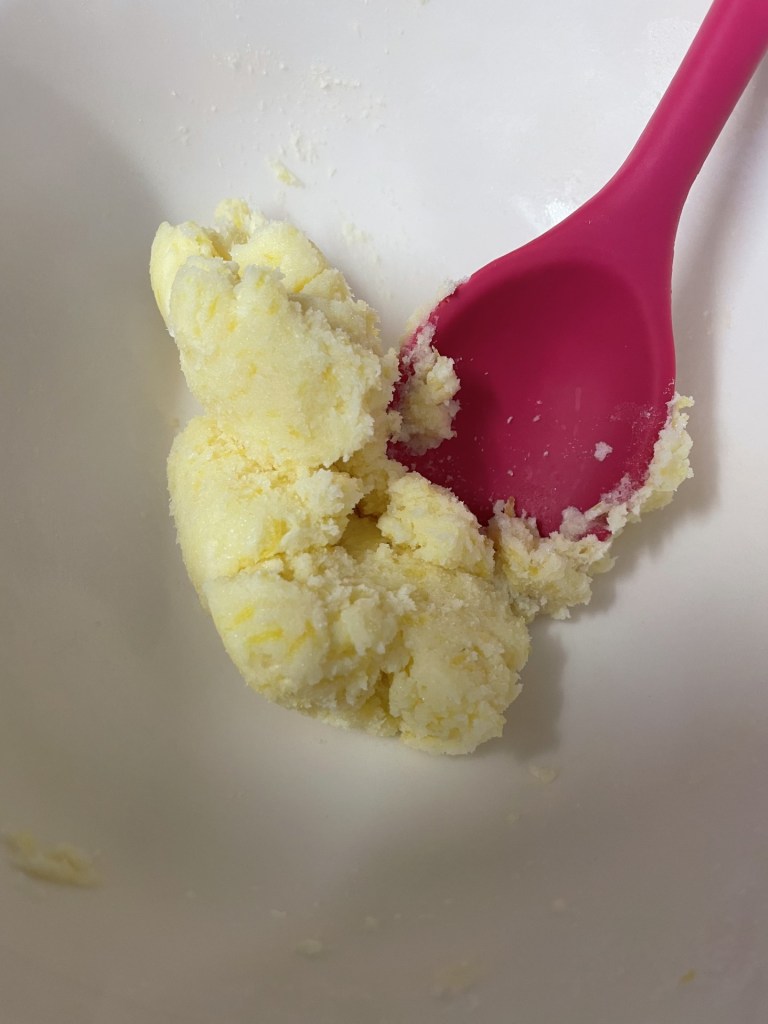 - Cream 100g of butter, 100g of caster sugar, the rind of 1 lemon and the vanilla extract together until light and fluffy.