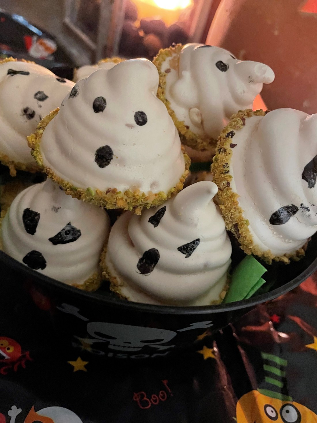 Next up for Halloween - Meringues. Crisp on the outside, marshmallowy on the inside, light, sweet and impressive when served at a party. They're traditionally served with whipped cream and fresh fruit, but these cute little Meringue Ghosts are dipped in white chocolate and crushed pistachios. They're the perfect sweet treat to serve at a … Continue reading Meringue Ghosts
